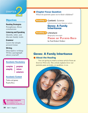 The first reading in the Chapter 2 is expository or non-fiction. The second reading is literary, further tying students’ work to cross-curricular content areas.