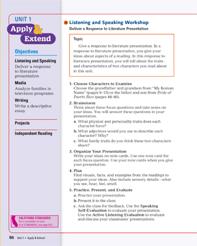Note the clear objectives and the reference to the California English-Language Arts Standards.