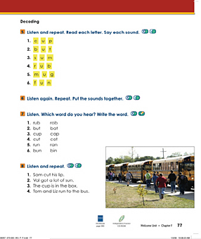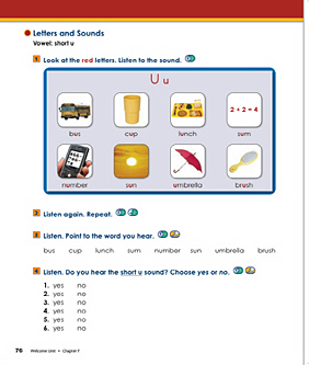 In this Chapter, the vowels "short u" and "short e" are presented and practiced.