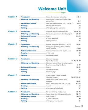 Milestones Introductory provides dual entry points for students at the newcomer level.The first is the Welcome Unit (Chapters A - G). The second begins at Unit 1.