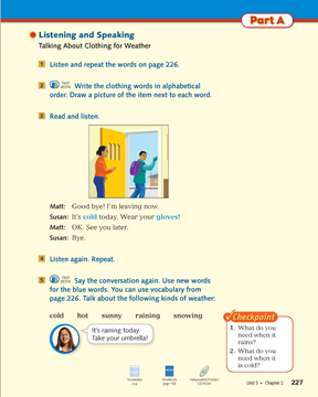 Students have ample opportunity to practice hearing and saying the new vocabulary, working from controlled to open-ended activities.