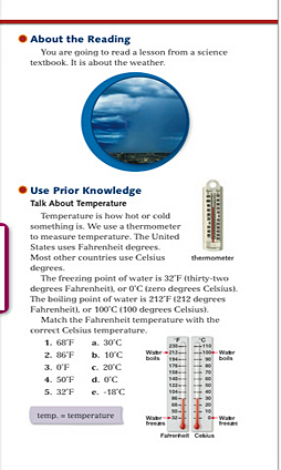The second activity is entitled Use Prior Knowledge. This section explicitly elicits or provides information which the students may or may not know, but which will be critical for comprehending the reading which follows.