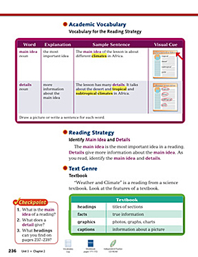 Here the Reading Strategy is "Identify Main Idea and Details."