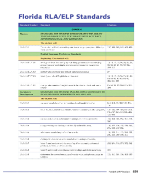 Direct reference to the Reading and Language Arts Sunshine State Standards and English Language Proficiency Standards are indicated here.