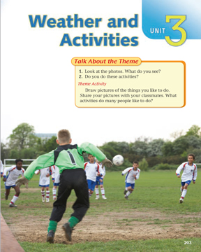 Every Unit begins with a highly visual introduction to the unit content. You will use the Unit Opener to activate schema and prior knowledge of the theme and topics which are contained in the Unit.