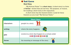 In the Text Genre section, students are taught the features of the genre.