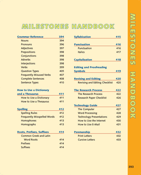 This handbook is an on-the-spot reference tool for students to use while they work through any of the activities in the Milestones Student Edition.