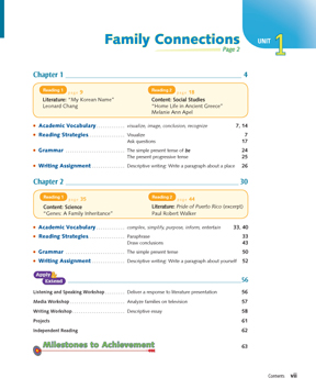 There is an extensive Milestones Handbook at the back of each Student Edition.