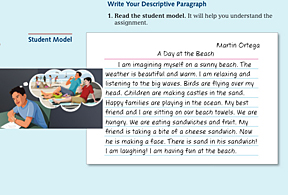 A process approach is used to guide the students through the writing assignment: Prewriting, Writing the draft, Revising, Editing and publishing.