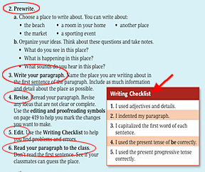 The Writing Checklist gives the student the opportunity to self-evaluate his or her writing.