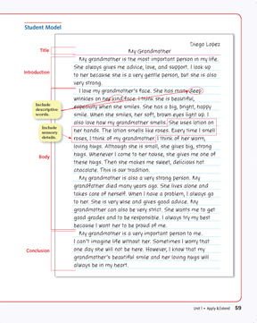 Students are provided with a Student Model of a descriptive essay.