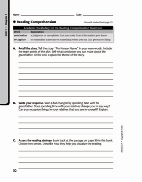 The Milestones focus on academic vocabulary is seen again in the Reading Comprehension section of the Workbook.