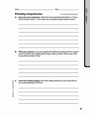 Students are also asked to assess their own application and mastery of the reading strategy taught in the Chapter.