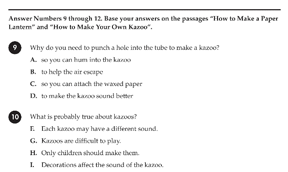 Students read a passage modeled after a type of reading they will encounter on these tests.