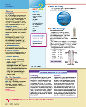 In Part B of the Chapters in Units 1 -7, the Teacher's Edition pages shift in organization and content to follow the features of the Student Edition page.