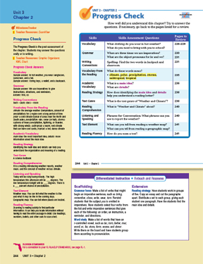 The answers are provided here. Teacher support is provided for the Listening and Speaking as well as for the Literary or Text Elements, and Reading Fluency.