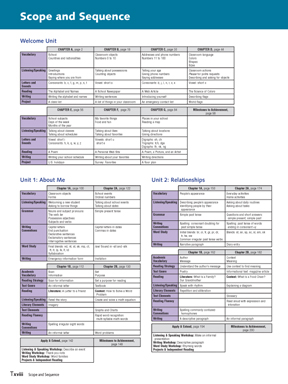 The Scope and Sequence provides a snapshot of the overall design of the Milestones program, allowing you to see where and when specific material is presented and practiced.