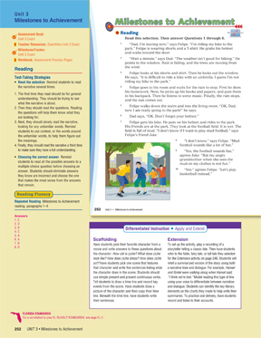 This end-of-unit assessment tool allows them, and you, to evaluate where they stand in mastery of the Unit’s content, prior to administering the formal summative Unit exam found in the Milestones Introductory Assessment Book or on the Milestones Introductory Florida Teacher’s Resource CD-ROM.