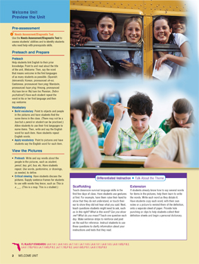 The Preview the Unit contains preparatory sections: Preteach and Prepare and View the Picture. Focus is on elements forthcoming in the Unit.