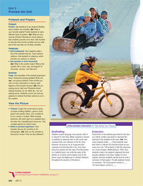 Note the correlations to the Reading and Language Arts Sunshine State Standards and English Language Proficiency Standards found at the bottom of each page. This clearly spells out the standards being taught here.